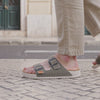 Η επιφάνεια από γνήσιο φελλό δεν προσφέρει μόνο επιπλέον άνεση, αλλά υπογραμμίζει επίσης τη δέσμευσή μας για φιλικά προς το περιβάλλον υλικά. Το εσωτερικό πέλμα από υψηλής ποιότητας EVA σου εγγυάται μια ιδιαίτερα μαλακή, ελαστική αίσθηση – μέρα με τη μέρα.